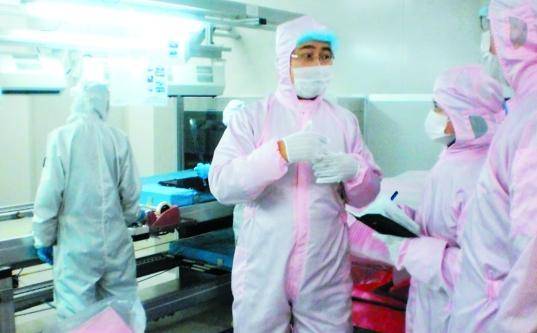 现在,被设计成无尘环境的模组车间里,地板和墙壁洁白,所有员工被包裹得严严实实,在工作台上有条不紊地清洁、组装。工艺主管黄府手把手指导工人:“这一步必须严格按照规定的流程操作,眼要准手要快。”一抬头,看见记者,这位年仅28岁的技术人才羞涩地笑了。