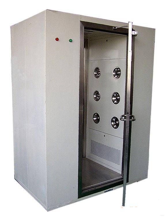 另外,供应商所说的风速通常是指喷嘴出口处的风速,而在人体或货物表面的风速又要降低许多。因此,对新的风淋室,其初始风速不应低于25 m/s,最好能超过28mls。